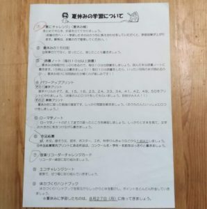 夏休みの宿題は小学生の間、中1くらいまでは計画の立て方を丁寧に。