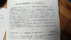 先日息子が検査のお知らせのお便りを持って帰りました。
