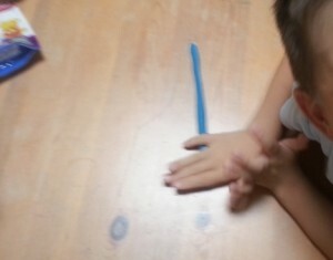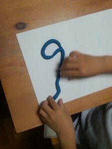 ねんどをへびさんのようにのばして