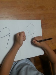 ねんどを取って、鉛筆で書いてみます。