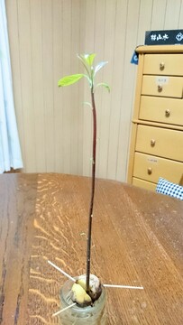 で、アボカドの種を水栽培したらこんなに成長しました。