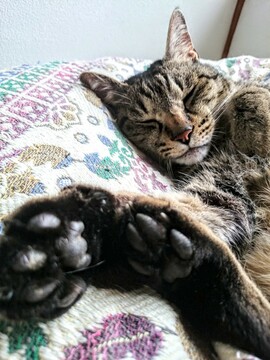 「ふみちゃん(ネコの名前)、(シャワーが)イヤよね。うんうん。わかるよ。