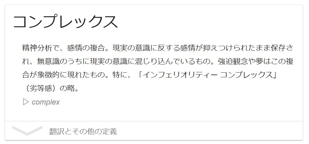 なので、普段一般的に言われているのはコンプレックスというより劣等感という意味合いが強かったり、