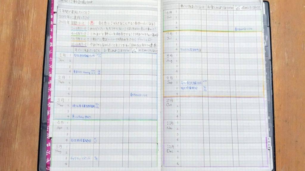 で、これを元にジブン手帳に年間計画表を書き込みます。