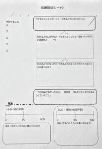 学習の記録と自分で自分のことをモニタリングする練習を兼ねたシートになっています。