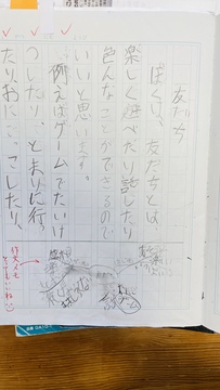 ノートを区切って分量が減るのも、ちょっと楽になるポイントだったりしますが、真面目な子や先生が許可を出してないことは全部ダメ!って子もいるので、そういう場合は別の紙に書きます。